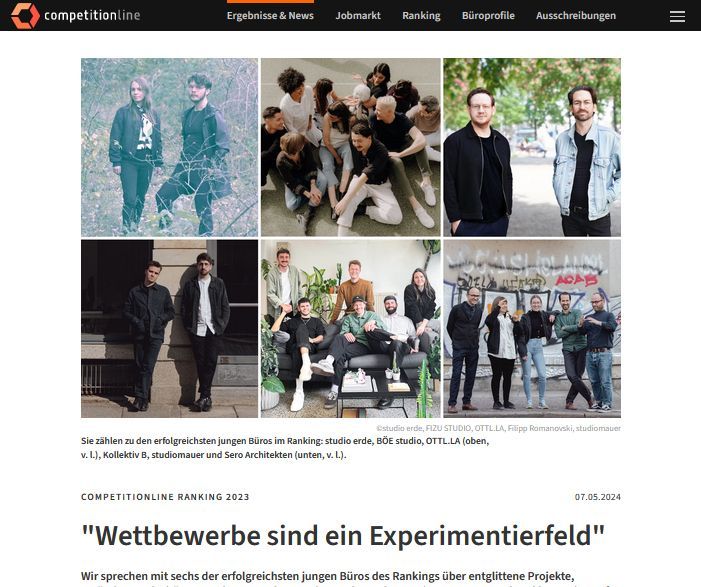 Im Jahr 2023 zählen wir zu den sechs erfoglreichsten jungen Büros im Competitionline Ranking. Wir freuen uns darüber, Teil des Interviews zu sein!