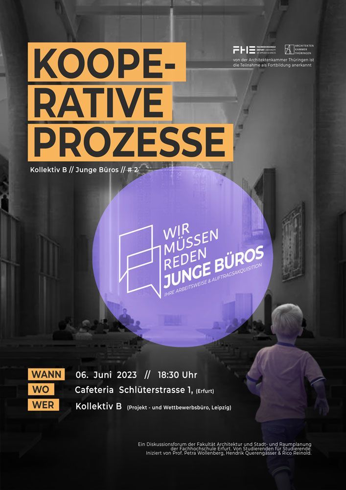 Wir freuen uns über die Einladung zum Vortrag von "WIR MÜSSEN REDEN" zum Thema "Junge Büros - ihre Arbeitsweise und Auftragsakquisition". Die Veranstaltung findet am 06.06.2023 um 18:30 Uhr in der Cafeteria der Schlüterstraße 1 in Erfurt statt.