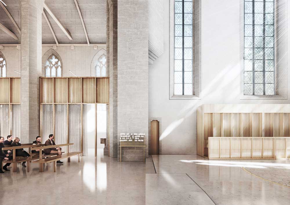 Die Erneuerung soll einerseits durch Ab- und Umbau einzelner Einbauten gelingen und andererseits in der Überarbeitung der vorhandenen Materialien und einer materiellen Vereinheitlichung der Einbauten sowie des Mobiliars zu einem neuen Gesamtkonzept finden. Dabei soll weitestgehend auf Symbolik und Referenzen verzichtet werden, um die ursprünglich angedachte Nüchternheit nicht zu konterkarieren. Ziel ist eine Reduktion auf das Wesentliche im Sinne der ursprünglichen Idee des augustinischen Bettelordens. Dabei werden theoretische Überlegungen Theo Kellners aufgegriffen und konsequent zu Ende geführt, um sich im Spannungsfeld zwischen Tradition und Gegenwart neu zu präsentieren.