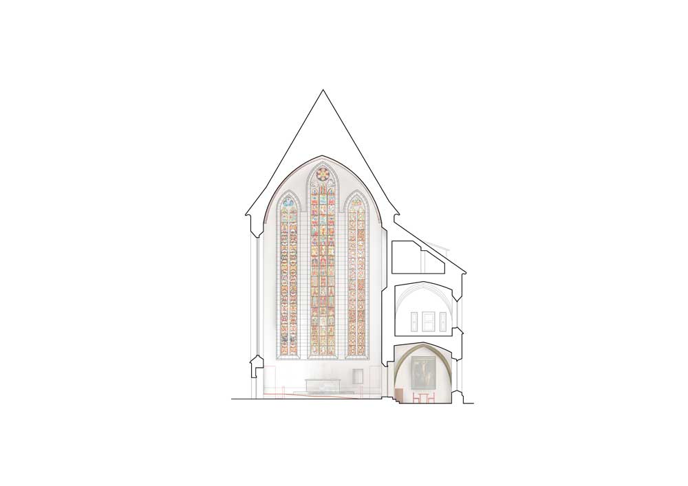 Das vorgeschlagene Projekt zielt darauf ab, die ursprüngliche Identität der Klosterkirche zu stärken und zugleich seine baulichen Veränderungen zu integrieren, um daraus eine klare, zeitgemäße Haltung zu formulieren.