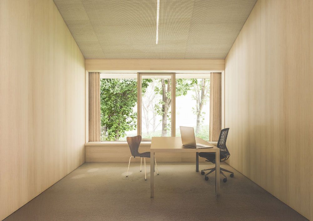 Insgesamt entsteht ein zurückhaltender, dennoch in seiner Haltung klarer Erweiterungsbau, der die Anforderungen eines zeitgemäßen psychosomatischen Umfelds präzise aufnimmt und in den bestehenden Kontext integriert.