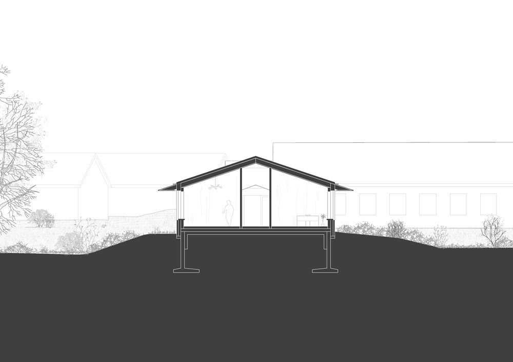 Der Entwurf folgt den Leitgedanken der Healing Architecture: Orientierung, akustische und atmosphärische Ruhe, Privatheit, klare Ausblicke und ein ruhiger räumlicher Rahmen. Die Organisation des Baukörpers reagiert darauf mit kompakten Wegen, übersichtlichen Strukturen und Rückzugsbereichen. Ein respektvoller Abstand zum nördlichen Bestand sichert zudem die notwendige Privatheit der Nutzerinnen und Nutzer.