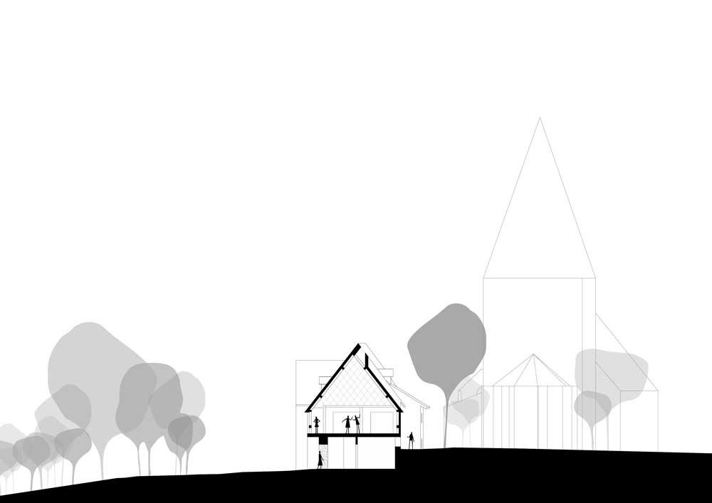 Der Entwurf soll vorgefundene Themen aufgreifen und zeitgemäß interpretieren. Dadurch soll eine spezifische Antwort entstehen, die sich aus den Gegebenheiten des Ortes entwickelt. Das Ergebnis ist ein neuer, räumlich und inhaltlich verbundener Körper, der den Bestandsbau komplementiert.