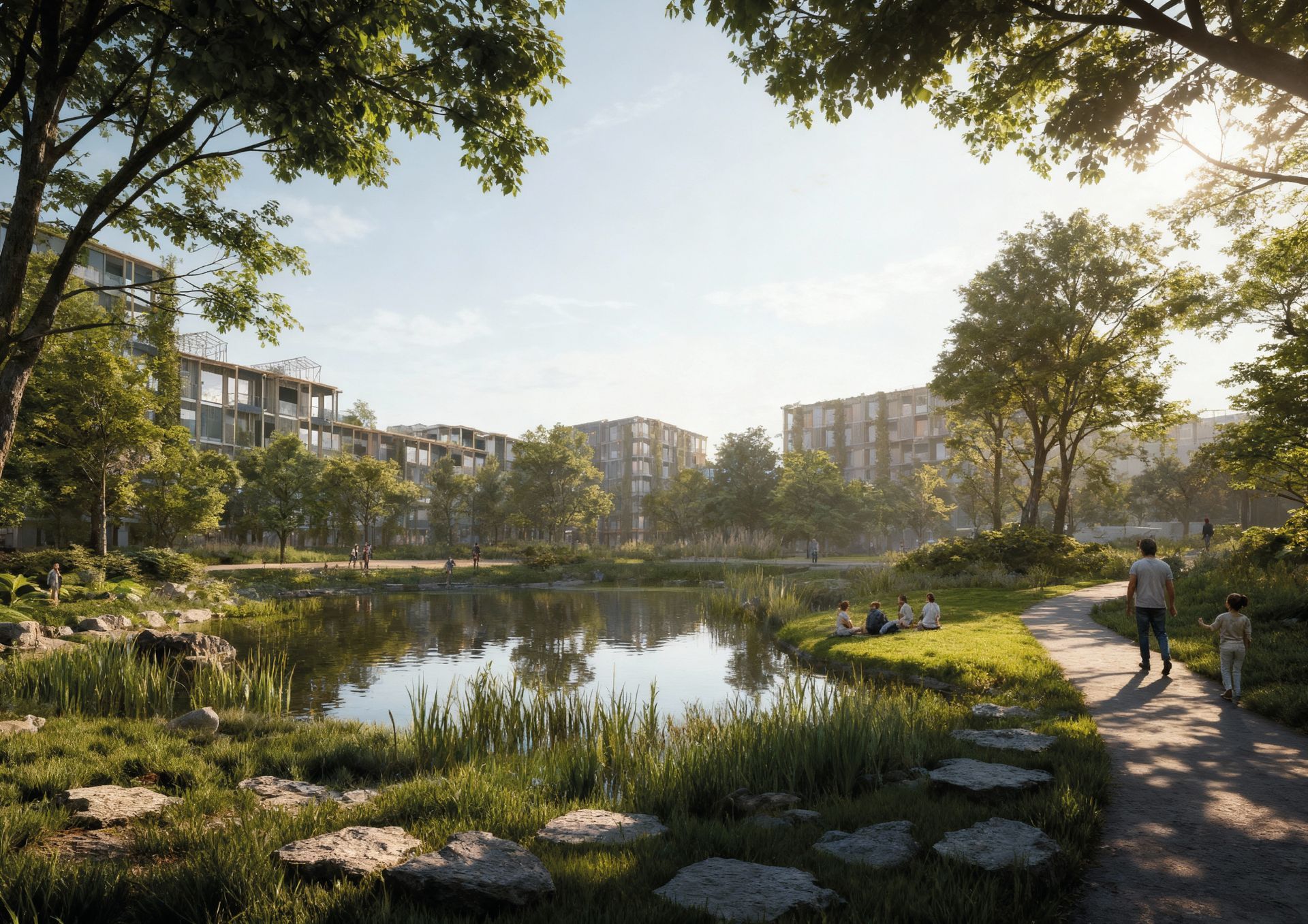 Am Übergang zum Landschaftsraum verzahnen sich die Neubauten und schaffen eine fließende Verbindung.