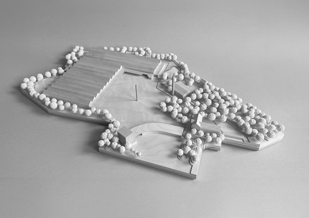 Dank der Ausnutzung des vorhandenen räumlichen Potenzials des Bestands, ist es möglich, ohne einen östlich oder westlich gelegenen Erweiterungsbau das Raumprogramm zu verorten. Dadurch wird die Erscheinung der hist. Struktur gestärkt. Im Außenraum können differenzierte Grünräume ermöglicht werden, welche den Mittelweg attraktiv mit dem Ideenteil verbinden.